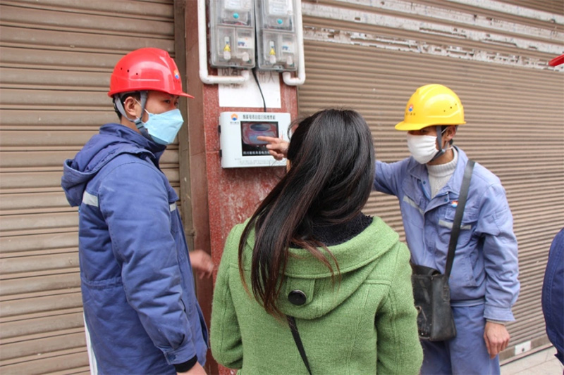 图:刘祖祥(右一)指导用户使用微信终端充值