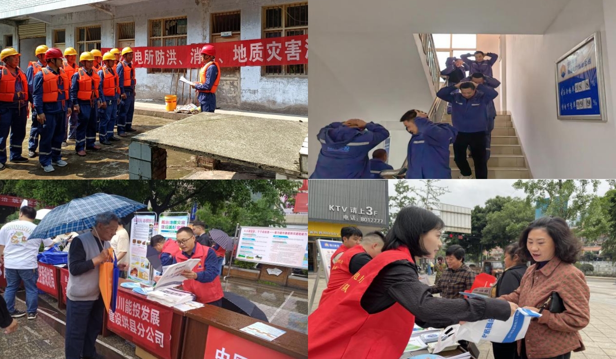 四川能投叙州电力、高县电力供电服务中心组织职工走进企业、工厂,全面普及安全用电、合规用电等知识,并同步开展客户侧设备防汛、消防隐患排查,提升用户安全用电意识和防灾减灾技能,切实筑牢安全防线。四川能投珙县电力、发展建设、电能公司充分利用电子宣传屏、公司微信、QQ工作群等渠道,发布防灾减灾常识。同时,结合电力行业实际,组织党员先锋队和青年志愿者深入辖区广场、包保小区等人员密集区域,悬挂安全横幅、发放防灾减灾宣传单,普及防灾减灾相关知识,使广大职工群众深刻认识防灾减灾的重要性,自觉增强防灾减灾的意识。四川能投屏山电力组织专业人员对所辖输电线路、变电站、配电线路进行了全面特巡特护,对安全警示标识不足的区域进行了整改。通过加装防撞墩、增加警示标志等措施,避免外破风险,提升供区电网防灾抗灾能力。四川能投兴文电力、筠连电力组织开展了防震减灾、森林防火、防洪度汛、防地质灾害和消防应急演练。演练模拟地震避险、突发森林火灾、汛期强降雨天气以及地质灾害等突发事件场景,通过迅速启动应急预案,高效集结抢险救护队、设备抢险队和后勤保障队,有序组织人员撤离,疏散被困人员,救护受伤人员,并开展应急抢险工作,有效提升了全体职工的防灾减灾救灾能力,确保在灾情发生时能够迅速、有序地投入到应急抢险工作中,以最快的速度恢复供电。